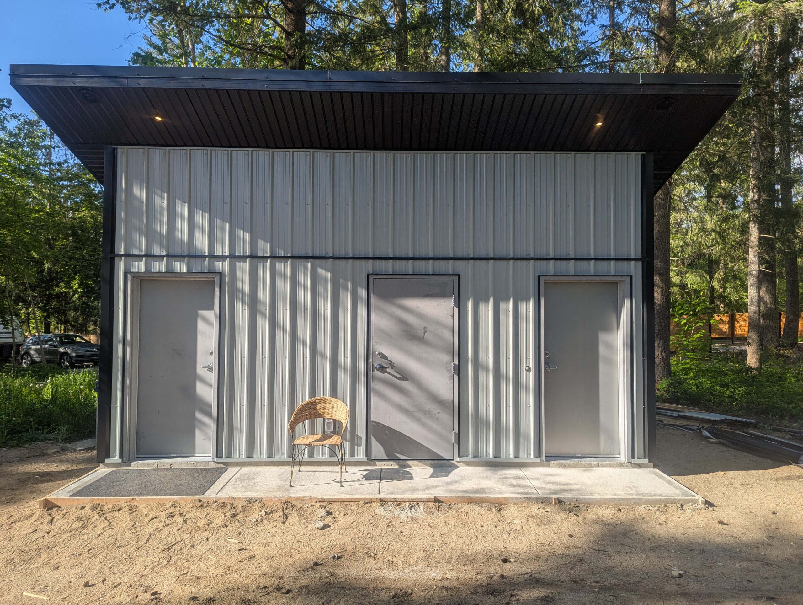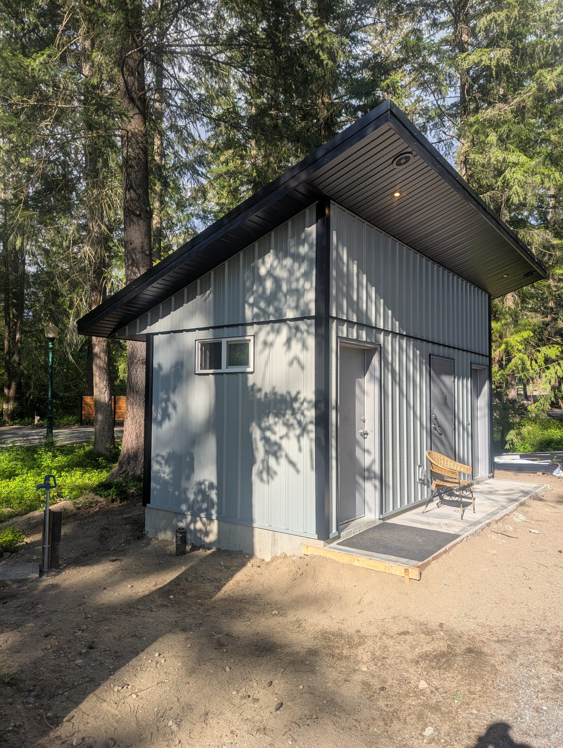 Set within a natural park space, these modern washrooms were designed with durability, accessibility, and simplicity in mind. The metal siding and thoughtful roof design ensure longevity in all seasons.